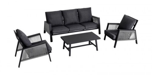Deze zonnige tuinset met moderne vormen, een delicaat ontwerp en een luchtige look is precies wat u zoekt voor een afgelegen plek in de tuin of op het balkon. De 3-delige set bestaat uit twee comfortabele rope tuinstoelen met prachtig armleuningen en een bijzettafeltje met een ronde bovenkant. Comfortabel zitkussens en het elegante antraciet aluminium frame maken het zomerse ontwerp compleet. Met deze set kom u zeker in de vakantiestemming!