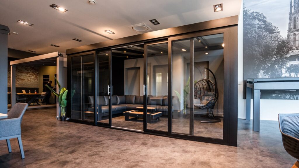 De stevige aluminium profielen in combinatie met een nauwkeurige afwerking zorgen voor een stabiele en duurzame constructie. Elk detail is ontworpen met oog voor kwaliteit, veiligheid en een lange levensduur. Zo geniet u niet alleen van optimale bescherming tegen wind en weersinvloeden, maar ook van een luxe, open uitstraling die perfect past bij uw overkapping, veranda of tuinkamer.